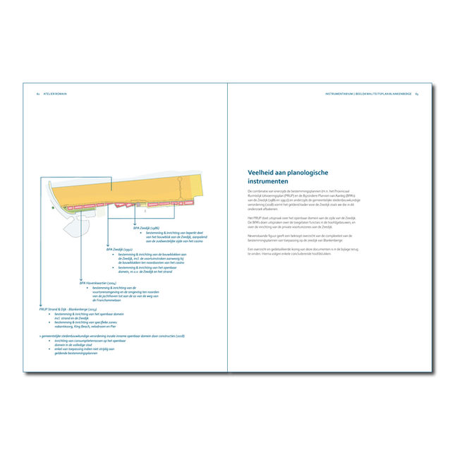 Het beeldkwaliteitsplan bestaat uit drie onderdelen: een inventaris en analyse van de huidige beeldkwaliteit, een toekomstbeeld voor een samenhangende en herkenbare zeedijk, en een actiegericht kader dat de stad ondersteunt bij toekomstige keuzes. De aanbevelingen zijn helder vormgegeven en opschaalbaar, zodat ze ook relevant zijn voor andere kuststeden met vergelijkbare uitdagingen.